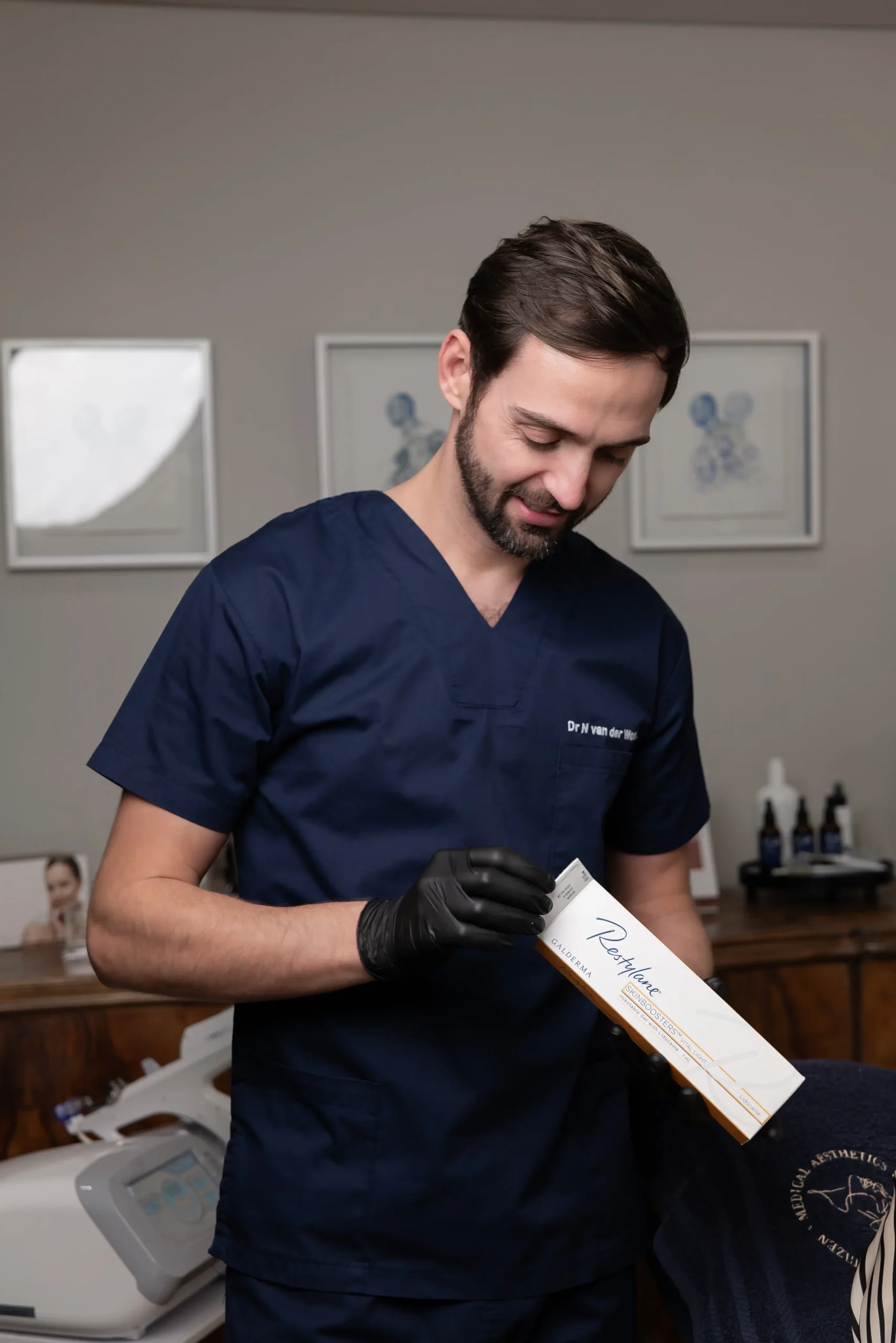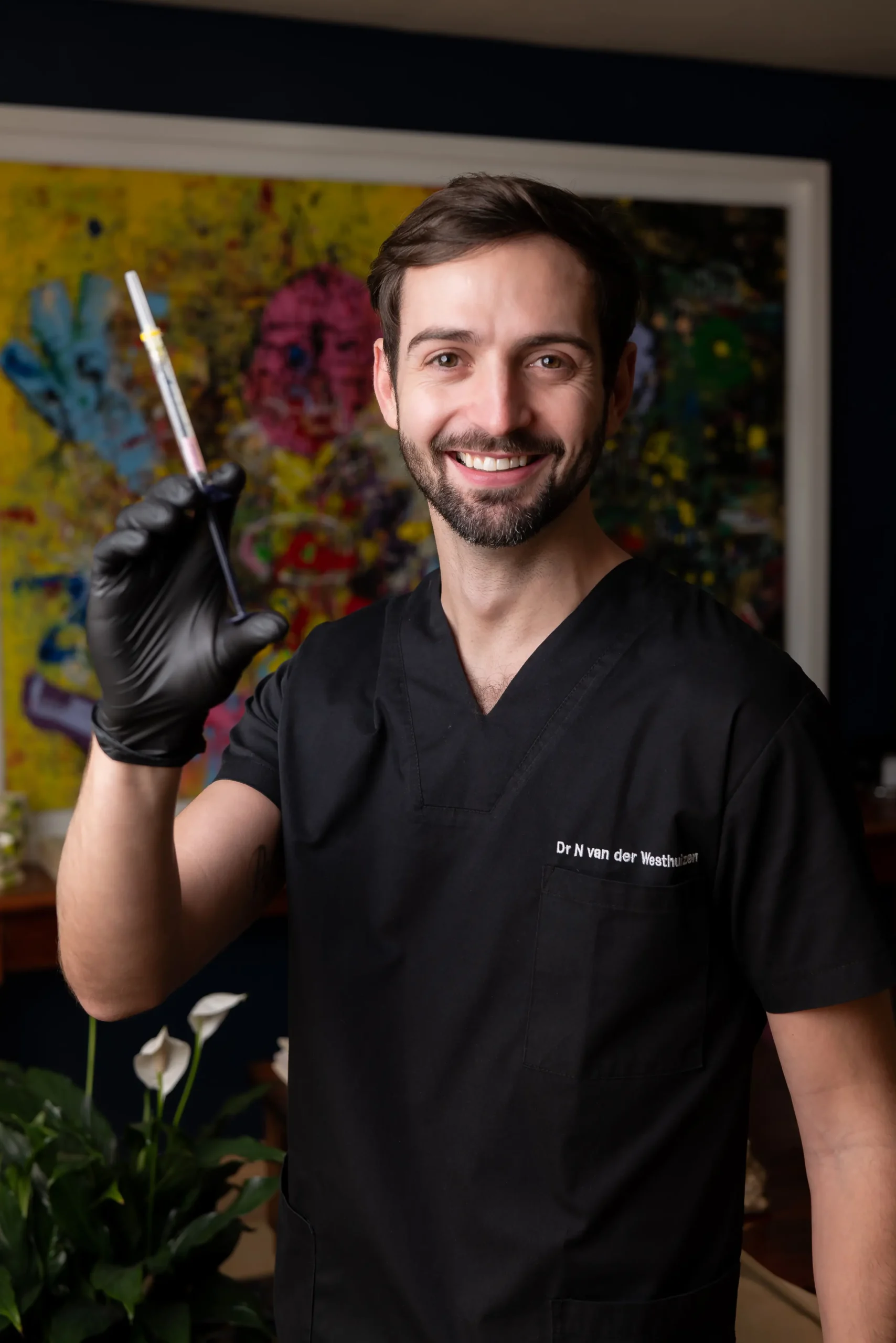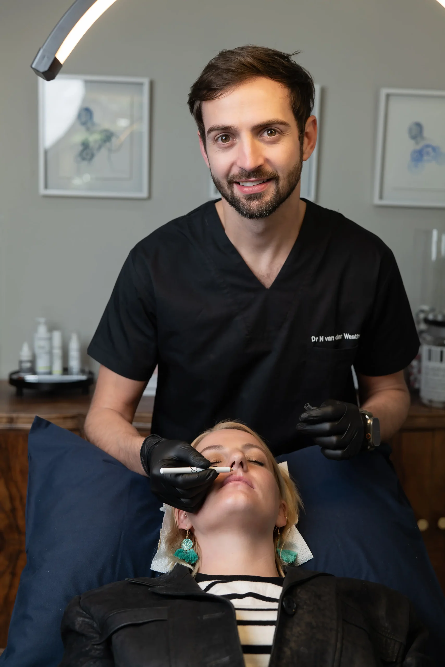 Dr Nico is an experienced medical aesthetics practitioner with a passion for skin health and anti-aging. He believes in guiding his patients on a sustainable journey toward glowing, confident skin. With a medical degree from the University of Pretoria and specialised training in injectables, skin rejuvenation, and advanced skincare, he is dedicated to combining scientific expertise with personalized care.