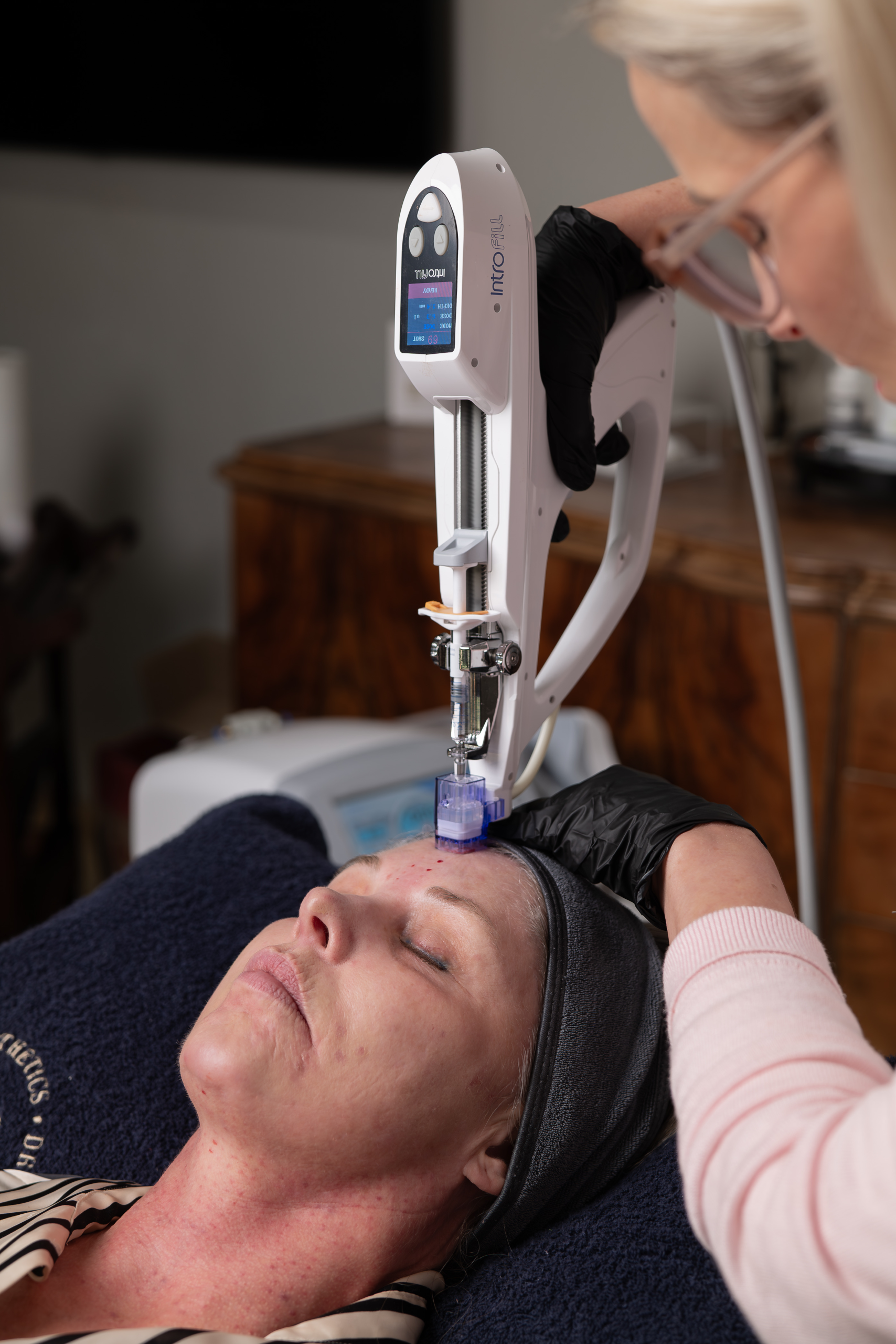 A skin remodeling treatment that spreads evenly beneath the skin to stimulate collagen and elastin, resulting in improved hydration and firmness with minimal injections.